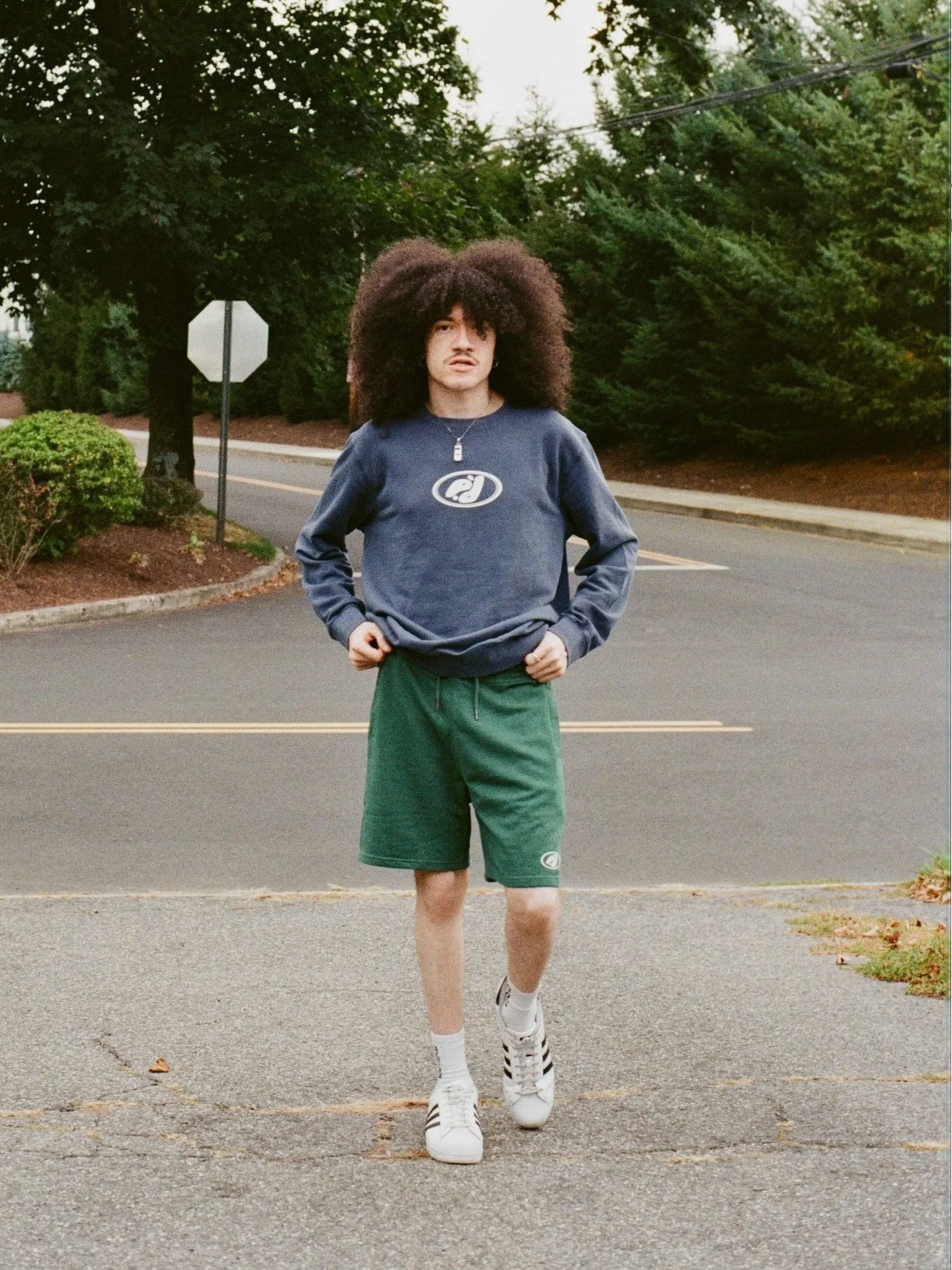 “Ellipse”: A mid-weight, French terry cloth crewneck (the same feel as our previously dropped terrycloth hoodies) in a deep, ocean blue color, featuring our new “Ellipse” pattern. 100% organic cotton, as always.